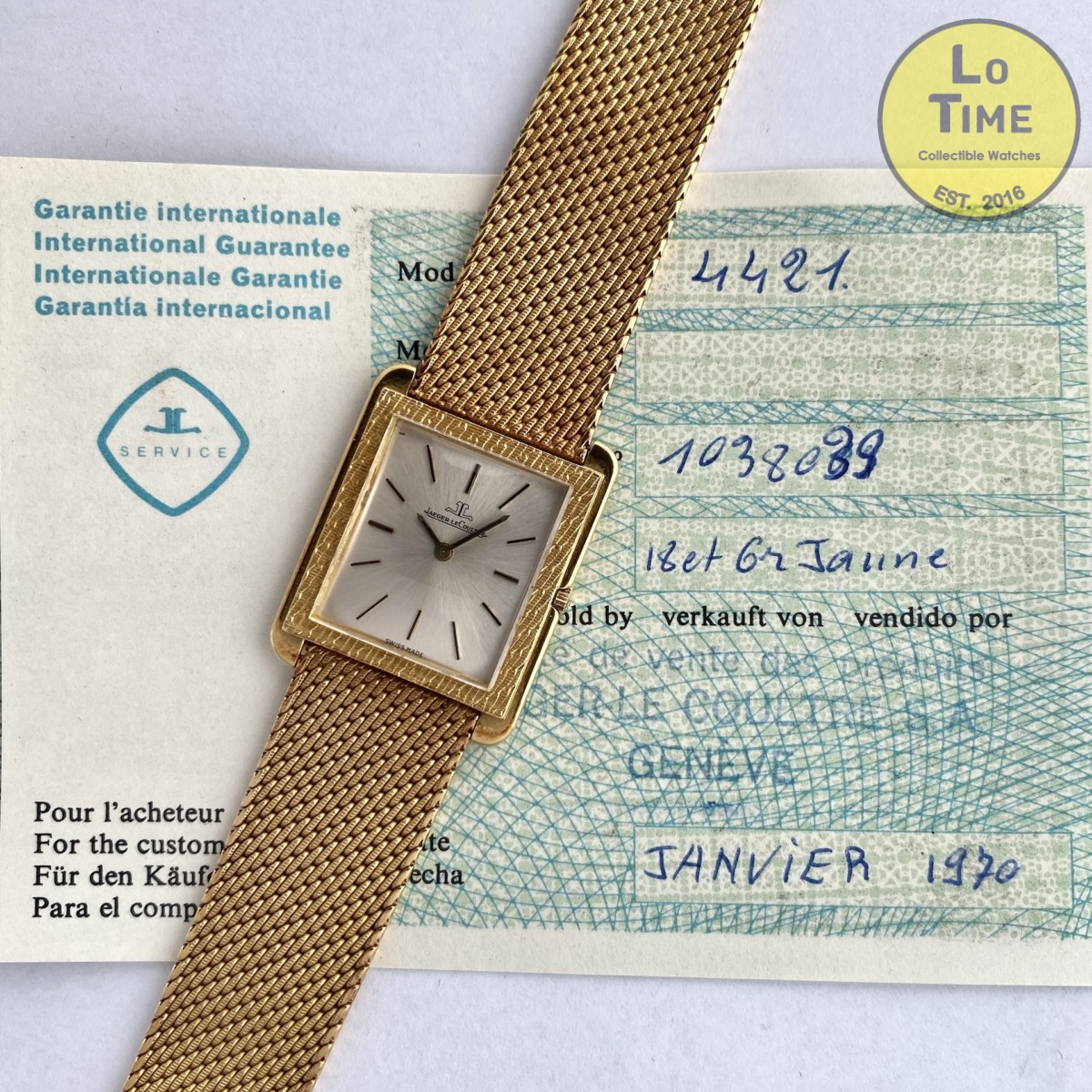Description :   Jaeger LeCoultre 4421 in stunning conditions. Milano bracelet that is wonderful, long. Cream dial with a spot at 11 o’clock. Fantastic dress watch.